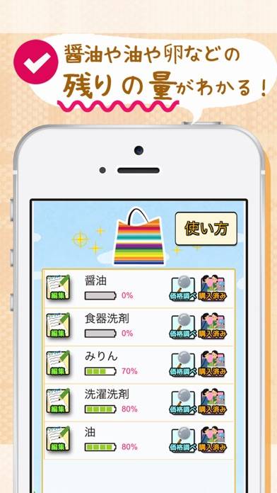 調味料など残量を記録して買い物時に確認して買い忘れなどを防げる便利アプリ!