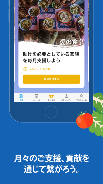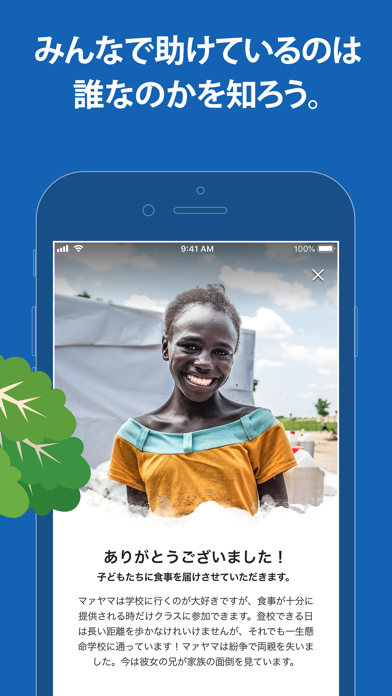 スマホから飢餓に苦しんでいる子供たちに寄付できるアプリです。1食あたり85円から寄付額を選び、支援を提供できます。