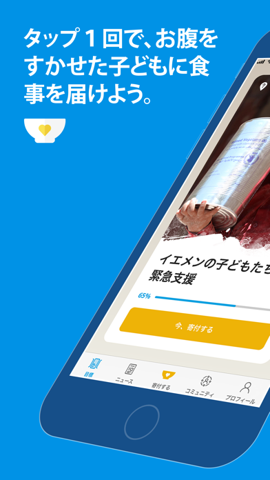 世界中にいる飢餓で苦しむ子どもたちのために食事支援ができるアプリ。クレジットカードかPayPalの登録が必要ですが、60円という低額から手軽な寄付が可能。街の募金箱に入れるような、ハードルの低さが魅力です。国連WFPに協力してみたい方、少しでも興味がある方におすすめです。