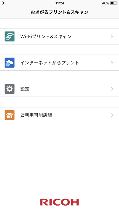 ▲メイン画面。よくマルチコピー機で選べるものが、スマホアプリで選べるようになっている。