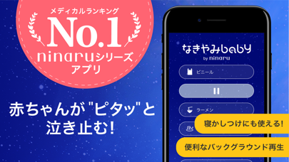 赤ちゃんが喜ぶとされるさまざまな音が収録されているアプリです。収録音声は、ビニール・ドライヤー・ラーメン・水流・蕎麦・掃除機(弱、中、強)の全8種類。赤ちゃんがどの音を好むのか探れるので、夜泣きやぐずりに疲れた方に重宝するでしょう。