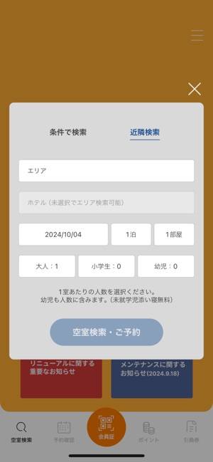 - 現在地や行く予定のエリアで簡単にホテルを確認・予約