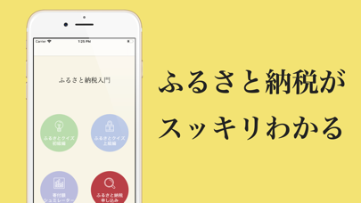 ふるさと納税について気軽に学べるアプリ。お得だとは聞くけど仕組みがよくわかってない、そんな人にぜひおすすめです。初級・上級のクイズで勉強したあと、そのままアプリ内からの申し込みも可能。寄付額の目安もシミュレーションできますよ。