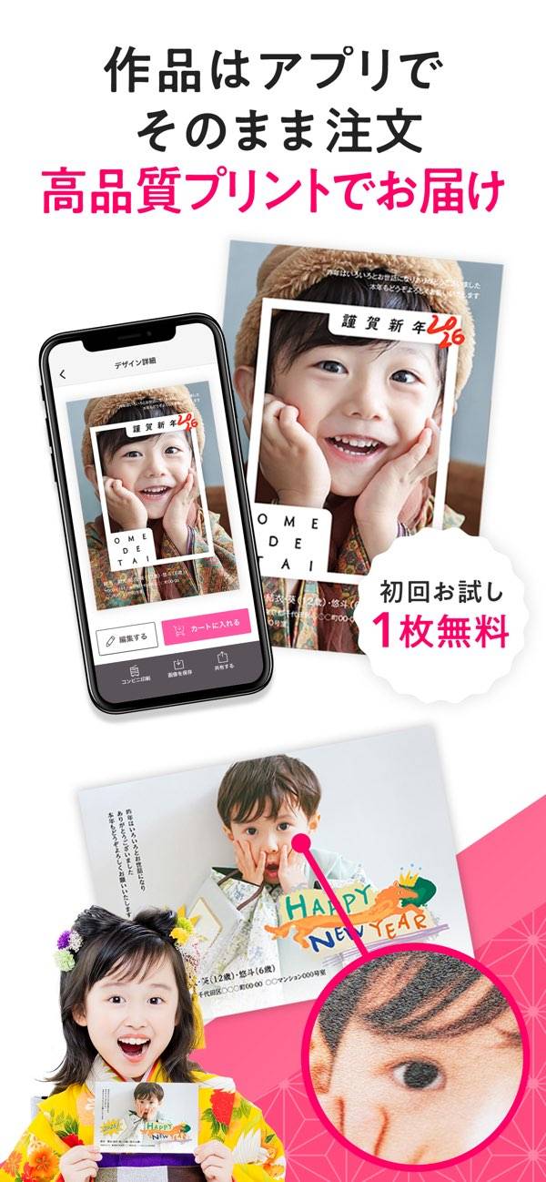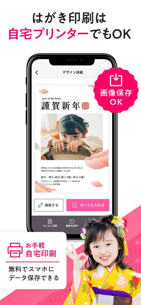 スマホの写真を使って、かわいくておしゃれな年賀状が簡単に作れるアプリです。選べるデザインテンプレートは950種類以上、スタンプも5,000種類以上ととにかく豊富。自宅印刷でもプロ仕上げの注文印刷でも、どちらでも対応可能なので用途や予定に合わせて気軽に年賀状作りが楽しめます。