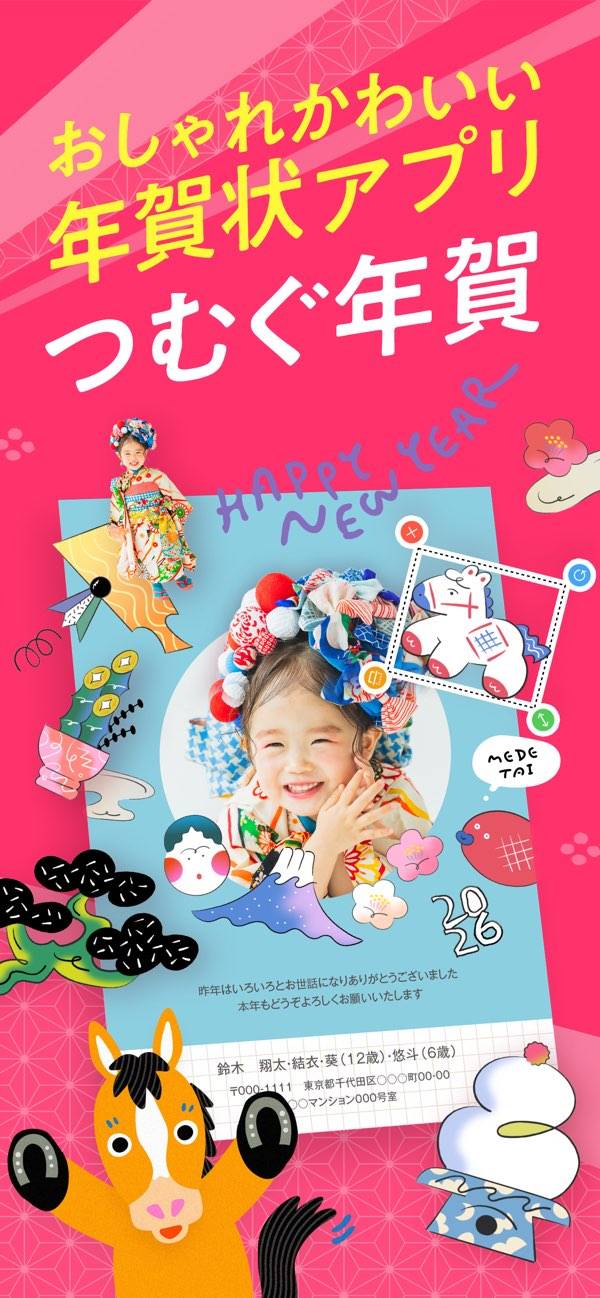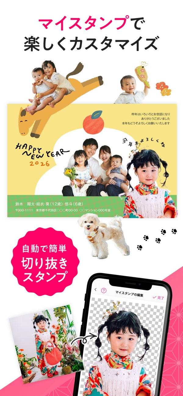 写真を選んでポンポン配置 スマホだけでおしゃれ年賀状が完成