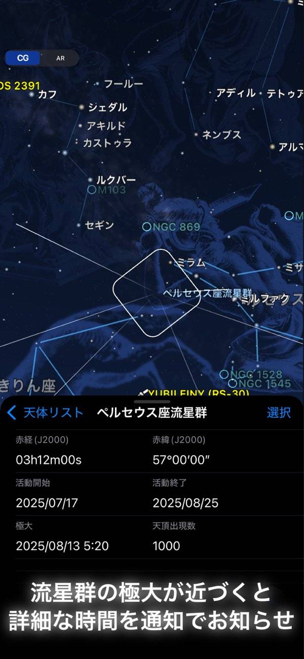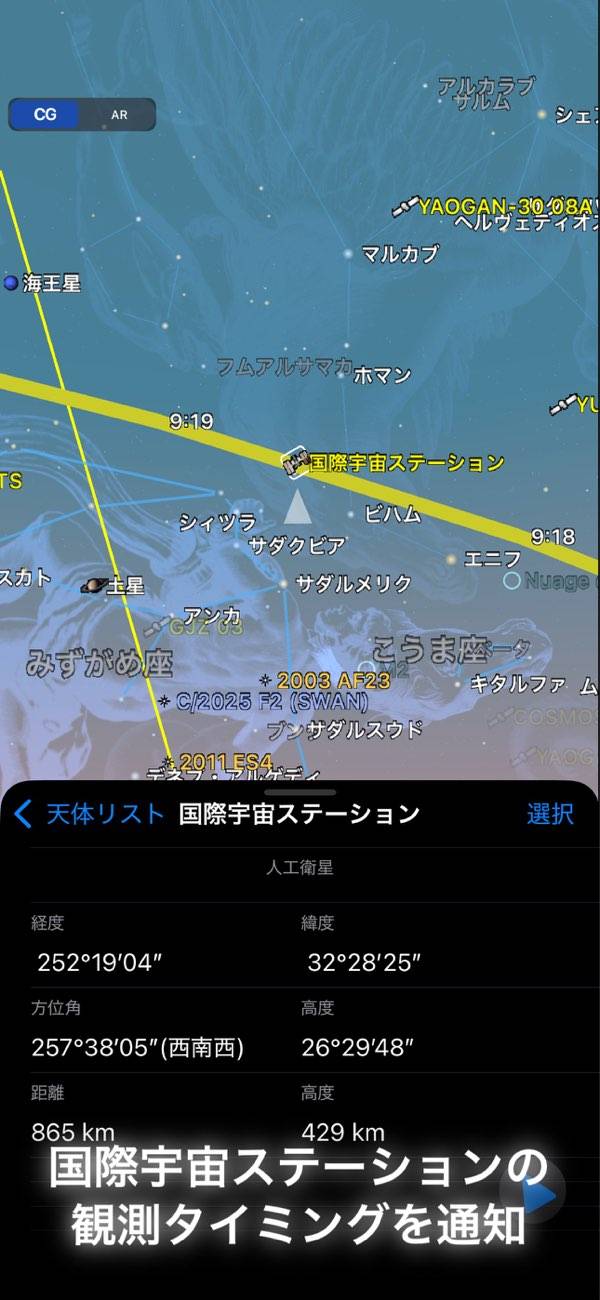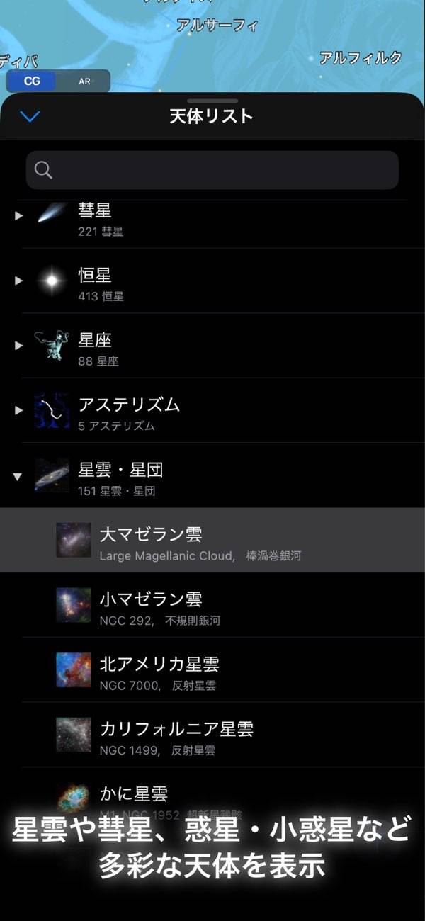 - 天体リストをタップして、観察したい天体へジャンプできる