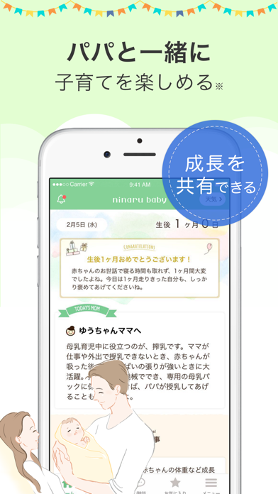 妊娠出産のninaruもインストールして参考になったのでninaru babyもダウンロードしてみました。子どもとの毎日が当たり前になっていましたが生後何日目がわかり、毎日ママへのメッセージも読めて、成長スケジュールも見れてまた新鮮な気持ちで接していけそうだなあと思いました。