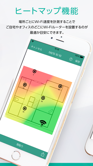 - ヒートマップ+間取り図で、室内で一番電波が強い位置がまるわかり