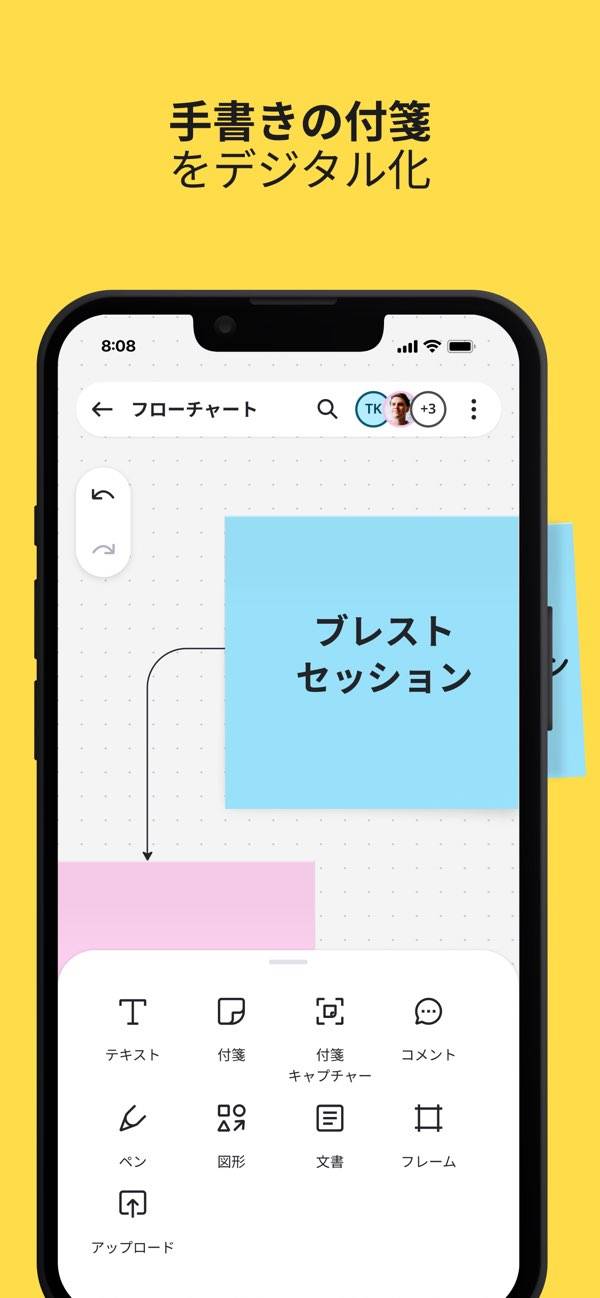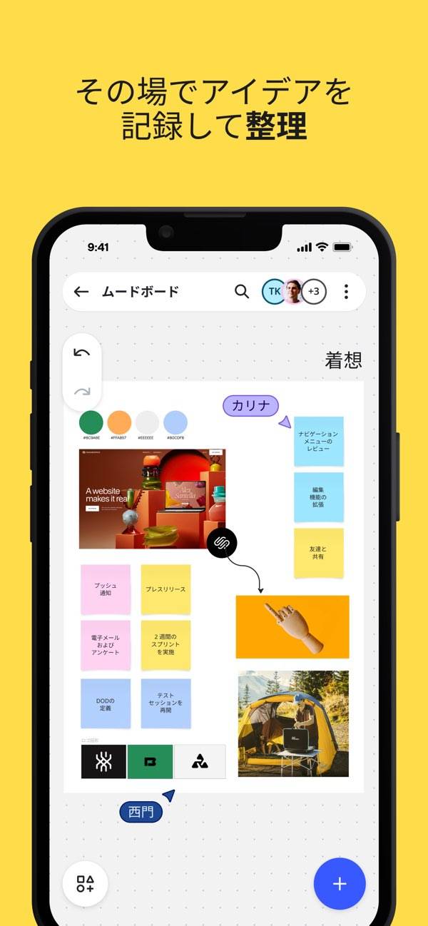 どこにいてもチームで集まって考えられる、オンラインの自由なキャンバスアプリ。手書きメモも画像もドキュメントもひとつのボードにまとめて共有できます。