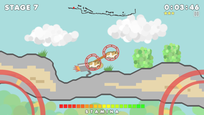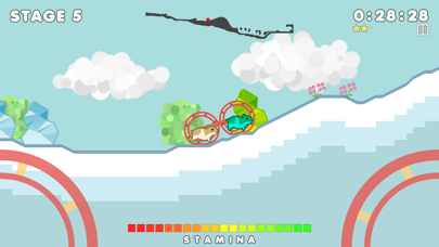 滑車は2つの車輪となっていて、左側をタップすると後輪が動き、右側をタップすると前輪が動くという仕組み。道はかなり凸凹しているので、前輪と後輪を上手く調節しないと登れないようなところも登場します。また、走っているうちに体力が消耗していき動けなくなることも。