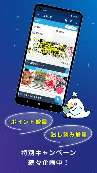 ビュアーの使い勝手自体もそこまで悪いものじゃないですし、紙の書籍の注文もアプリ上からでき、購入した価格に応じたポイントも付与されるので、近場に紀伊國屋があって紙媒体の書籍も買うことがあるのならキノッピー使っても良いかなと思います。
