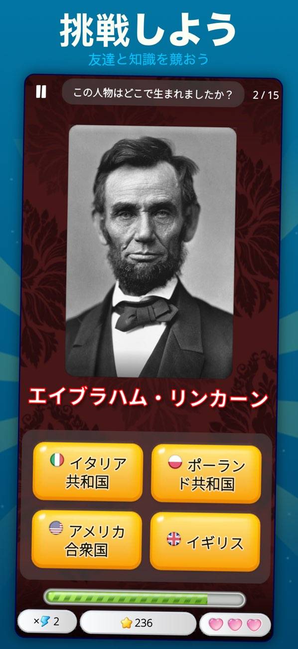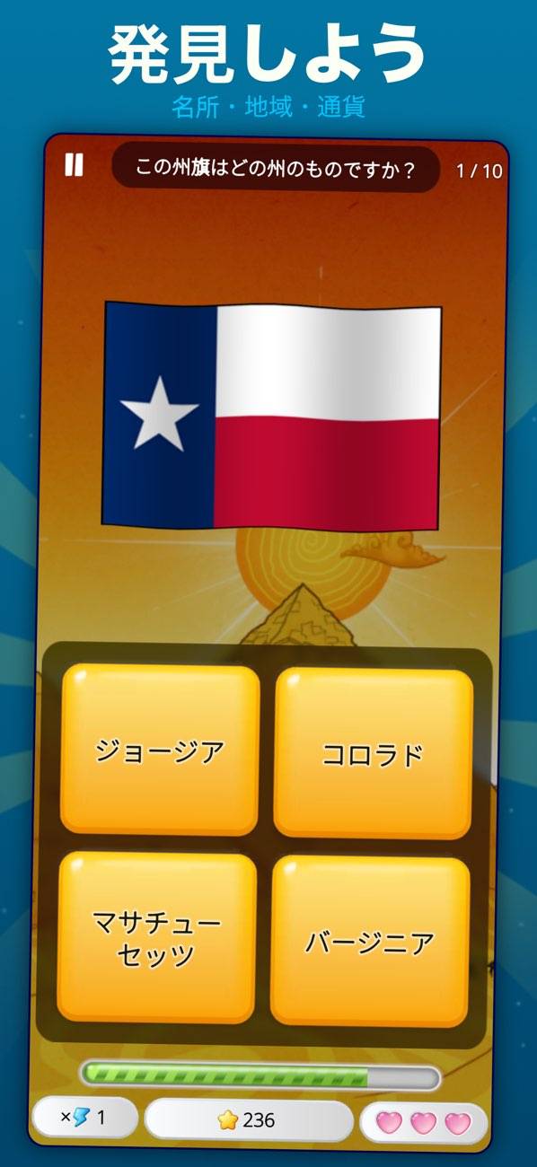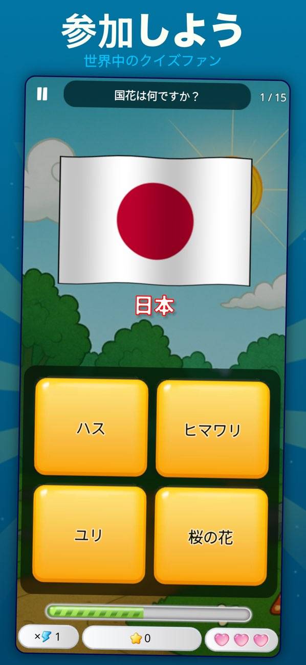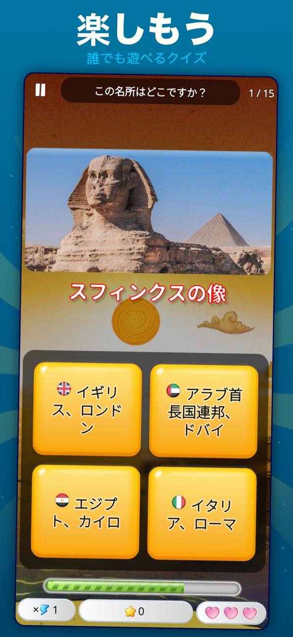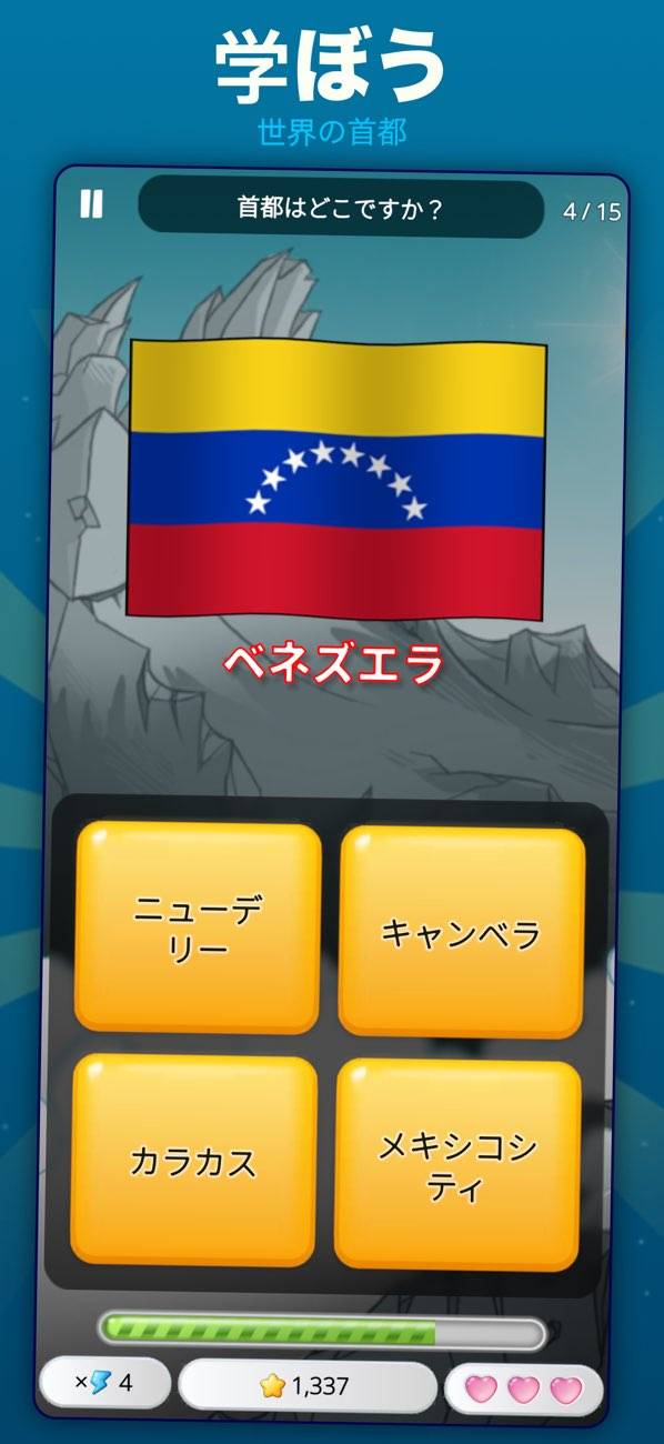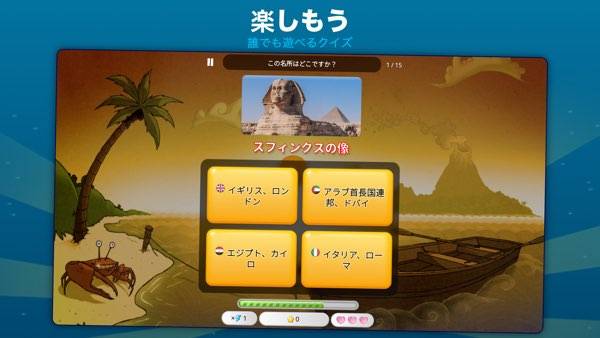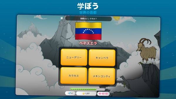 世界の首都をクイズで遊んで楽しく学べます。難易度が選べ名所・地域・通貨なども学べます‼︎タイマーを止めたり、次の質問にとんだり、間違えた答えを吹き飛ばしたりと便利な要素もあるので飽きないで続けられてイイですね‼︎