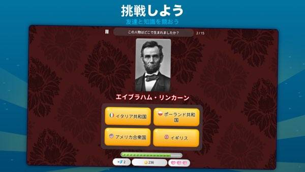 世界各国の首都の名前は大体分かる……といったちょっとマニアックの方にはたまらない作品になっています。一応難易度は分かれているのですが、一番簡単なものでさえ、激ムズ!例えば、「ウェールズの首都は?」「ウルグアイの首都は?」と全く身に覚えのない首都名が並び、普通の人なら苦戦すること必至。国名・首都名など地理に自信のある方は挑戦してはいかがでしょうか。