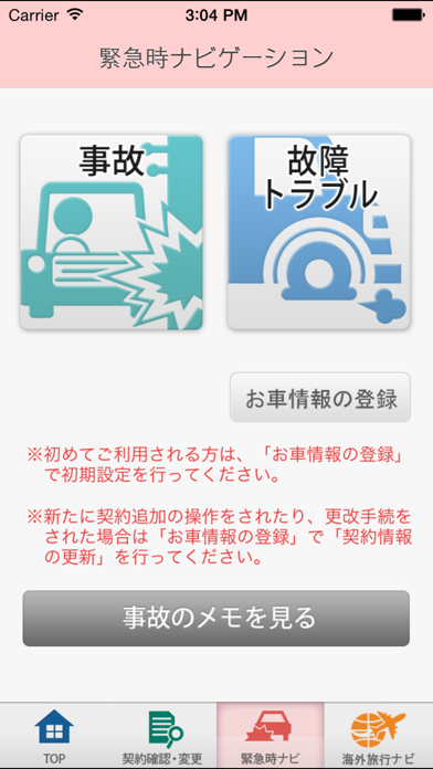 一方緊急時ナビは、事故が起きてしまった時に使える機能。