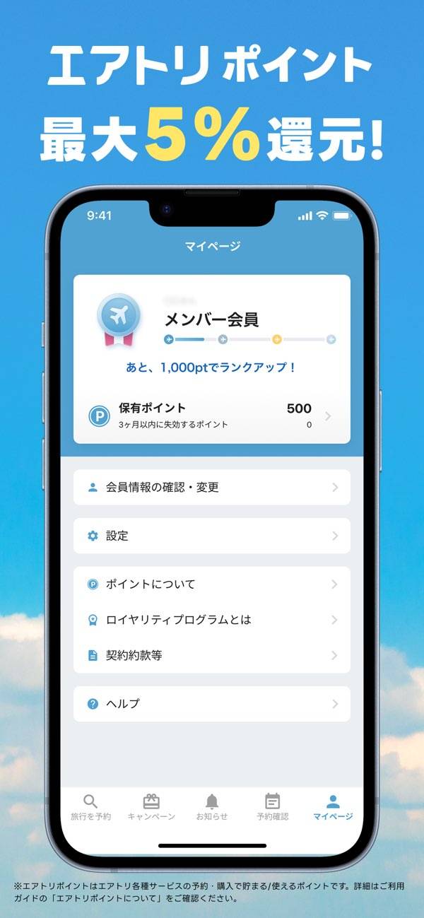航空券やホテルの予約で購入金額の2%がエアトリポイントとして還元され、1ポイント1円で次回予約に利用可能。マイルほど使い勝手が良いわけではありませんが、旅行や出張が多い人なら十分なお得感を感じられるでしょう。