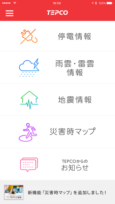 TEPCO公式アプリ! 災害の情報やお知らせが受け取れる