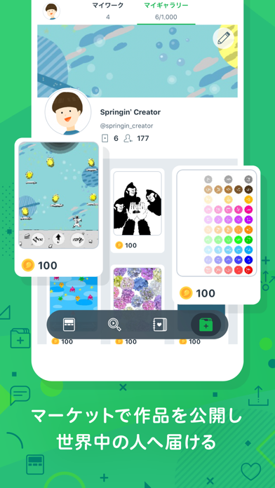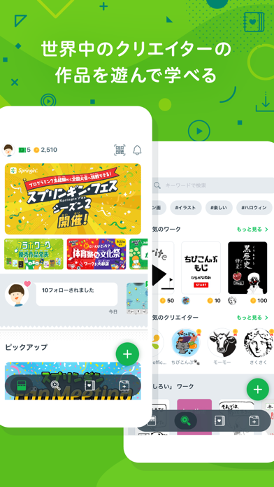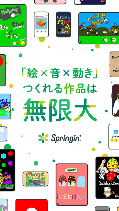 プログラミングの知識がまったくなくても、いちからゲームを作成できるアプリです。キャラクターや背景の絵を描いて、ジャンプや移動などのアクションを指定するだけ。重力で落下させたり、スマホを傾けて操作したりと、複雑な物理演算ゲームでも大丈夫!