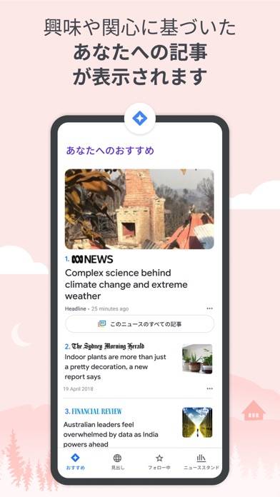 過去の検索記録などからおすすめニュースを自動でピックアップしてくれます。スポーツ・エンタメ・政治など幅広いニュースを紹介。またGoogleアカウントを切り替えれば、ピックアップされる内容も変化します。