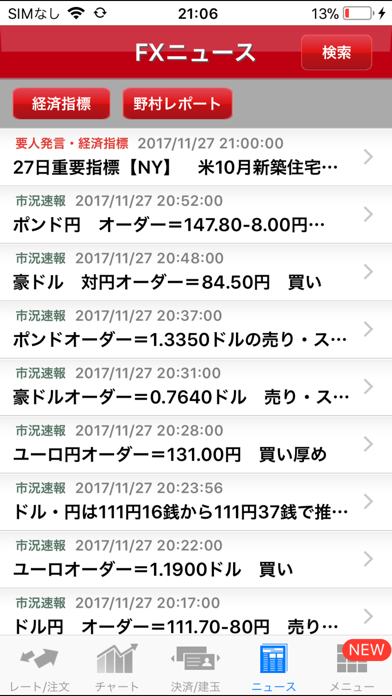 - ノムラFX口座向け為替取引支援アプリ。直感的に操作できる画面