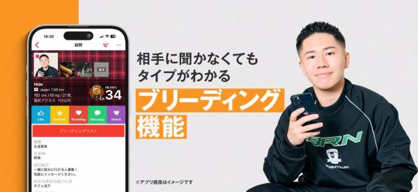 写真付きでリストアップされた中から好みの人を見つけたら「ブリーディング」機能で相手にタイプであることを知らせることができます。ブリーディングデータを積み重ねていくことで、本アプリが分類する「9つに分類される好みのタイプ」が分かってきます。タイプの絞り込みができれば、自分の好みの人が探しやすくなるというわけ。ブリーディングを多く得てレベルを上げれば、本アプリの機能もアンロックされていきますので、積極的にアピールしていきましょう。