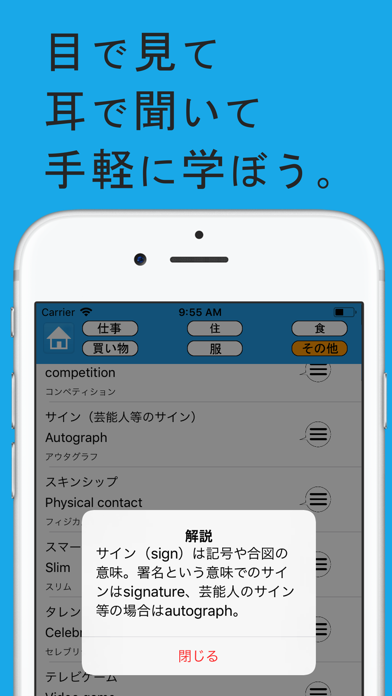 右側のハンバーガーマークをタップすると、解説が見られます。成り立ちや意味が丁寧に解説されているので、ためになるでしょう。気になる和製英語があればチェックしてみてください。