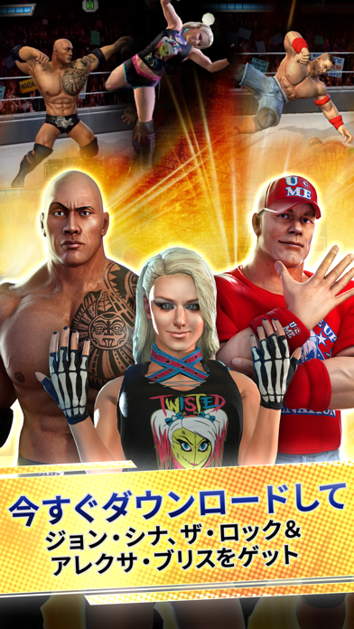 「ジョン・シナ」や「ザ・ロック」などWWEのスーパースターたちが登場する、血沸き肉躍るパズルRPGです。