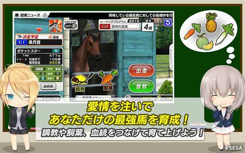 競馬の知識0でも可愛い秘書が分かりやすくナビしてくれるので大丈夫(⑅˃◡˂⑅)馬を生産するところからプロに育てる育成ゲーム。餌をあげたり調教したり、オススメですo(^・x・^)