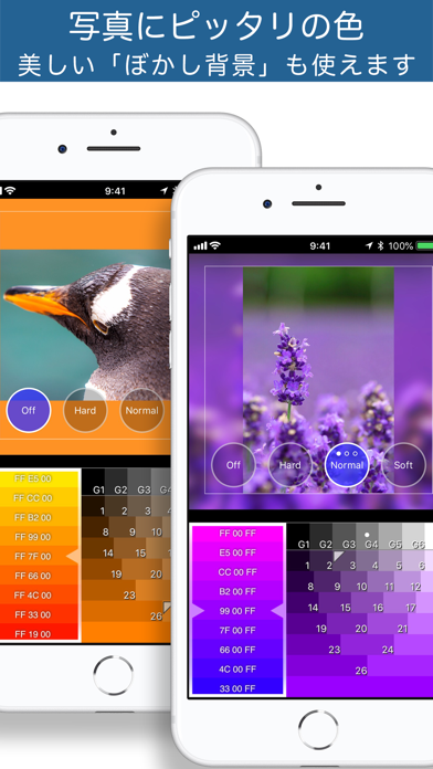 ▲背景を設定でき、色味を変えられる。背景の種類は少なめ。