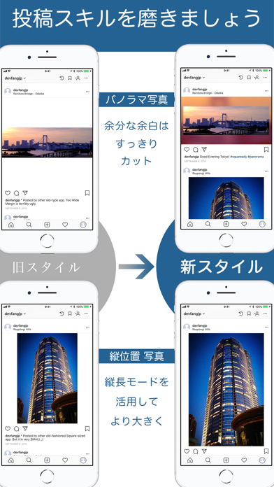 Instagramやっていて一眼レフなどの写真撮ってる方には非常に便利だと思いますよ👍Instagramのためにせっかく撮った写真を切り捨てて正方形にしなくても好きな背景付けてカッコよく投稿できるサイズにしてくれます😆オススメ~☆