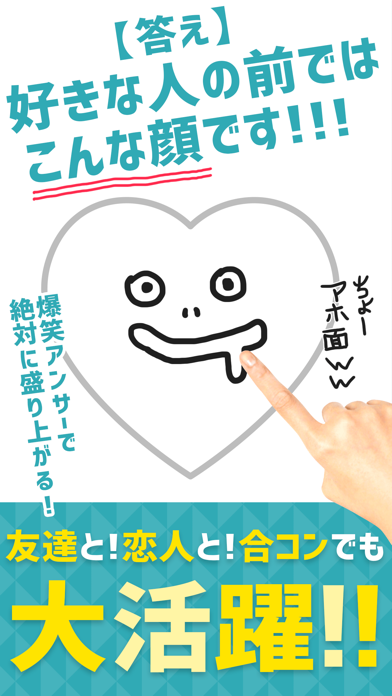 一問一答の心理テスト!答え方が絵なので絵心がない人とやると腹筋崩壊間違いなし!笑 当たっても当たってなくても笑えるものばかりなのでお互いの回答を見せ合うととても盛り上がります。もちろん一人でも楽しめる暇つぶしにぴったりのアプリです!