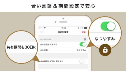 自由に公開することもできますが、合い言葉を設定すれば特定の相手だけに写真を見せることもできます。シェアの期間もあらかじめ決めておけるので、「一時的に見せたい」ニーズにもぴったり。誰が見ているか心配になることもなく、安心して大切な写真を共有できます。