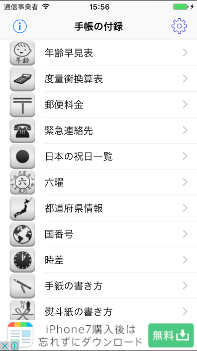 紙の手帳の後ろによく付いているアレがまとまっているアプリです。