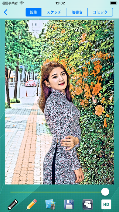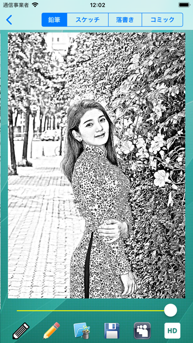 デッサン画のような写真加工ができるカメラアプリ。髪の毛1本1本までも丁寧に表現された、温かみのある作品ができあがります。白黒のスケッチはもちろん、色鉛筆で描いたようなカラー付きも可能。アプリのデザインは少し古いですが、機能としては問題なく使えますよ。