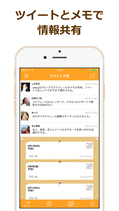 以前までは、メールやLINEで予定を合わせていたのですが、これなら1発で全員の予定が分かるので、助かっています!