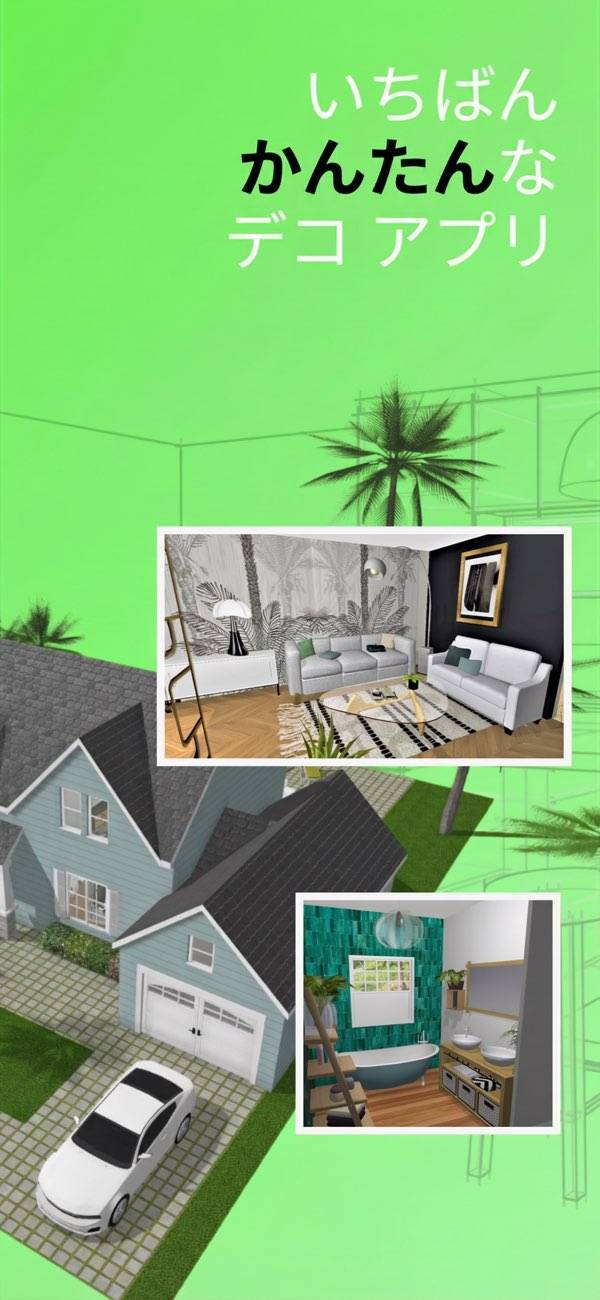 家の内装のレイアウトや、おしゃれなインテリアを3Dモデルで眺められるシミュレーションアプリです。キッチンやリビングの家具配置はもちろん、部屋づくりそのものもゼロからスタートでき、自分好みにできます。仕上がりは立体的に確認できるから、DIY気分で部屋いじりを楽しみましょう。