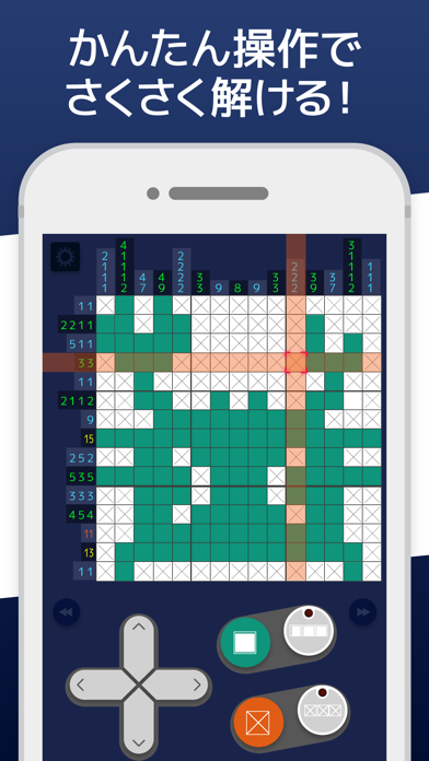 オーソドックスなイラストロジックパズル。タップと十字キーの2種類の操作選択、画面サイズの変更、連続塗りモードなど、いかにストレスなく遊べるかを考えてデザインされています。そして999問という問題数の多さも魅力。安定した面白さなので、暇つぶしにぴったりです。