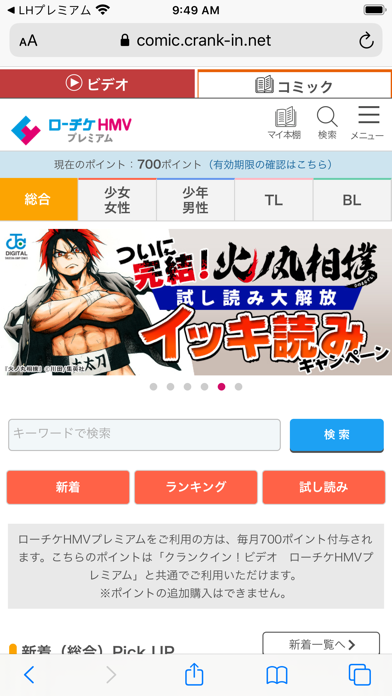 - ローチケHMVに移動でき、さまざまなジャンルの作品が読める