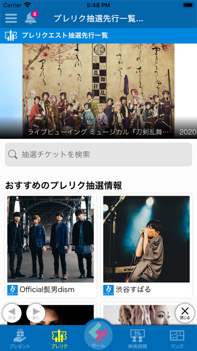 チケット抽選が始まっている舞台やコンサート、ライブなどの情報が見られます。そのほかコンテンツが充実しており、ローチケHMVで映画やマンガなども楽しめます。