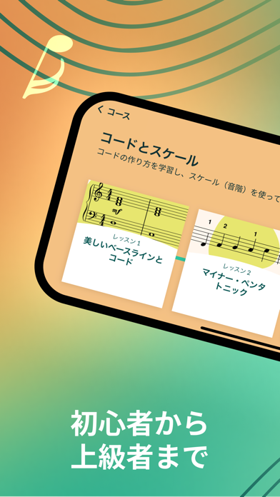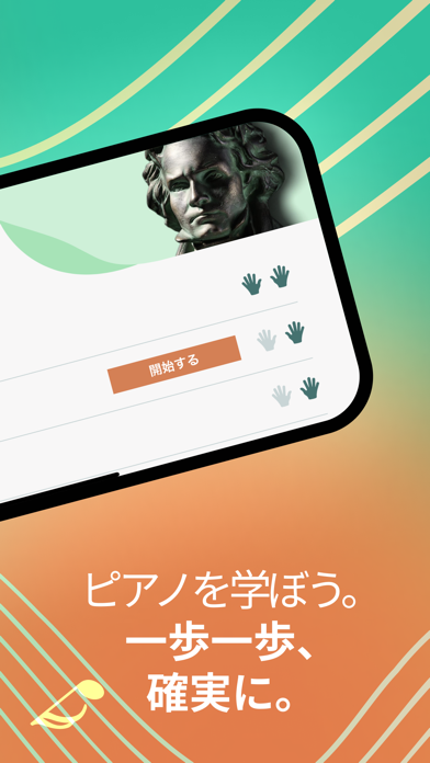 指を置く場所や弾き方など基礎から教えてくれるピアノ練習アプリ。パートごとにレッスンがあり、短期集中で取り組めるのが特徴です。また振り返りたいレッスンを見つけやすいのも本アプリの魅力。有名な曲からピアノ好きしか知らない曲まで、楽譜が幅広く収録されています。