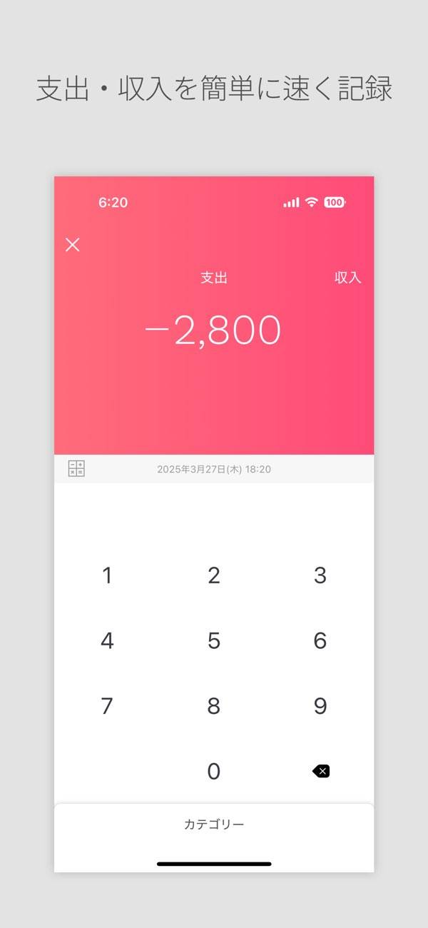 - 数字とカテゴリーを入力するだけ、手軽に収支管理ができるアプリ