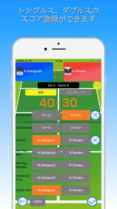 - 得点状況別にスコアを記録し、詳細なテニススコア表を作れるアプリ