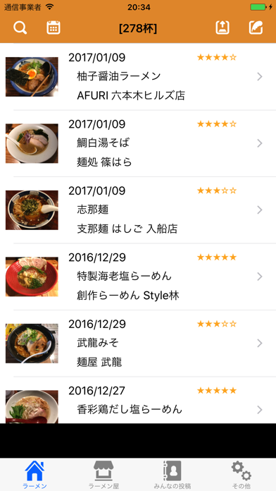 ▲ラーメンの写真を撮影して、店舗名や星評価を入力。今まで食べたラーメンを記録しておける。