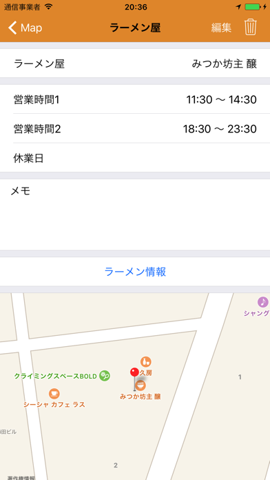 ▲メモを残したり、ラーメン屋の位置を地図に登録したり細かい記録が可能。