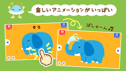 - 画面に表示されたものをタッチすると、アニメーションで楽しませる