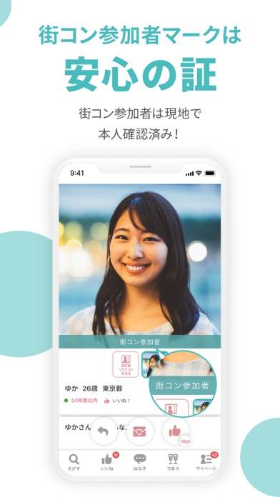 プロフィール写真に街コンへの参加の記載がされています。出会いに邪魔な業者を排除できるので、マッチングアプリの出会いに不安がある人でも安心です。検索でも街コン参加者に絞って探せますよ。