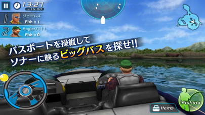 - ボートで移動するところから。本格的なバス釣りをスマホで楽しめる
