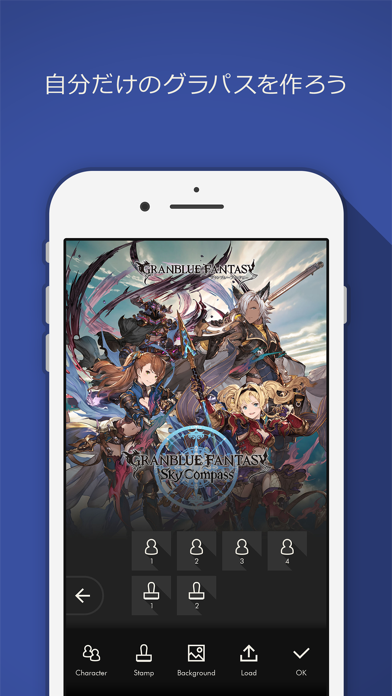 開催中のバトルイベントやキャンペーンを見逃さないのはもちろん、ホーム画面は背景とキャラのスタンプを使ってカスタム可能。ゲームで所持しているキャラしかスタンプを貼れませんが、組み合わせ自由なのでオリジナルのホーム画面を楽しめます。