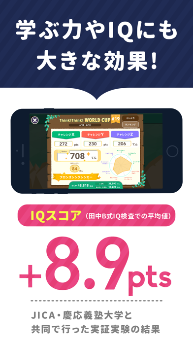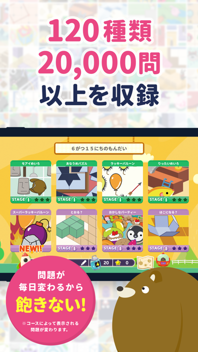 出題される問題は、図形、パズル、迷路など遊び感覚の3分ゲーム。制限時間があるため、子供は集中して取り組めます。問題は「思考センス」が養われるように作られており、考える習慣が自然と身につきます。1日3回のプレイ制限もあるので、やりすぎず毎日の習慣として取り入れやすいのもポイントです。