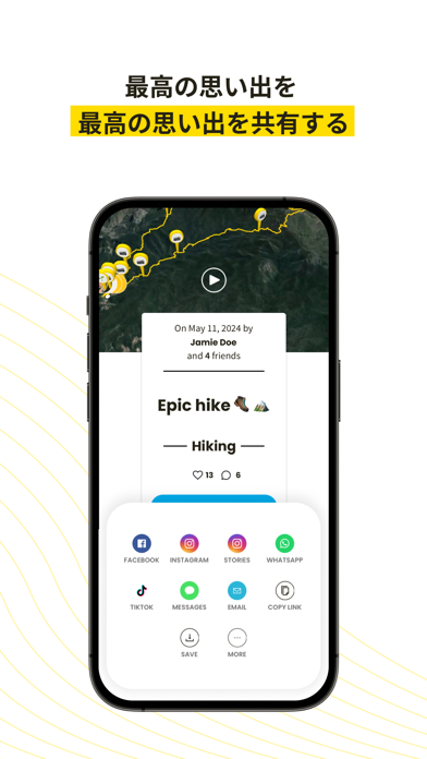 アウトドア活動をより楽しくするためのアプリです。3Dでビジュアル化した自分のルートをビデオで保存し、友人と共有できます。