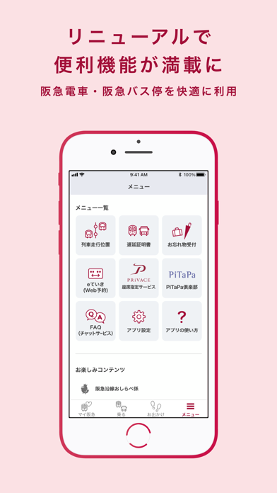 阪急沿線を使う人にぴったりの、移動とおでかけをサポートしてくれるアプリです。電車やバスの運行状況をリアルタイムで確認でき、遅延が発生したときもスムーズな乗継ぎを考えやすいのがポイント。休日のレジャー先も探せるので、通勤・通学からおでかけの計画まで広く役立ちます。